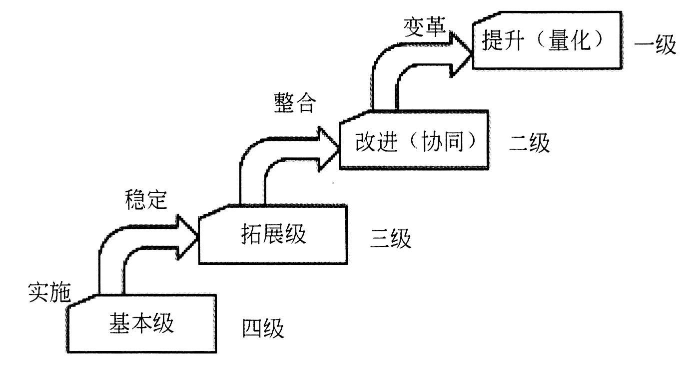 成熟度等级的设定表明,运维服务能力水平的提升是通过渐进的方式实现的,较高的成熟度等级涵盖了低等级的全部要求,成熟度等级不可跨级,即较高的成熟度等级必然以低成熟度等级为基础。