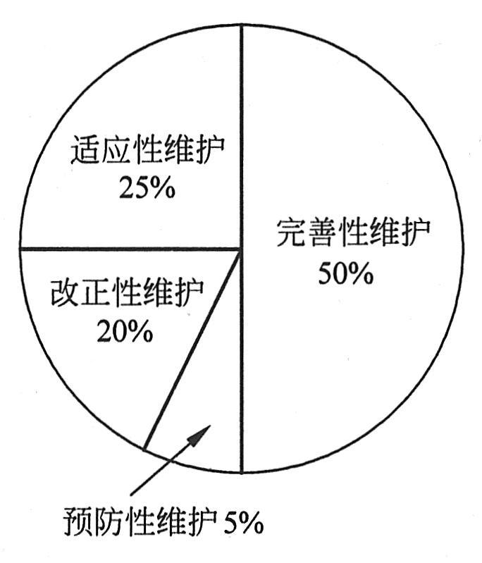 以上各种维护类型占整个软件维护工作量的大致比例如下图所示。
