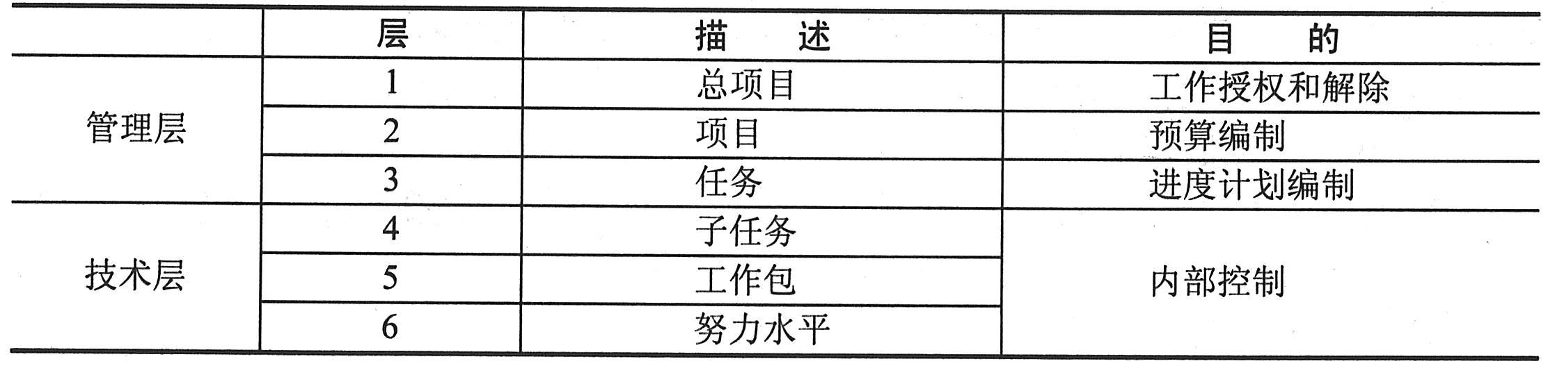 WBS的上面3层通常由客户指定,不应该和具体的某个部门相联系,下面3层由项目组内部进行控制。这样分层的特点有: