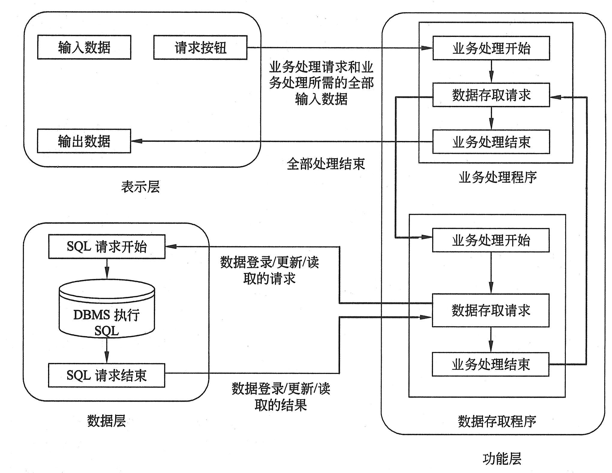 (3)数据层。数据层就是DBMS,负责管理对数据库数据的读写。