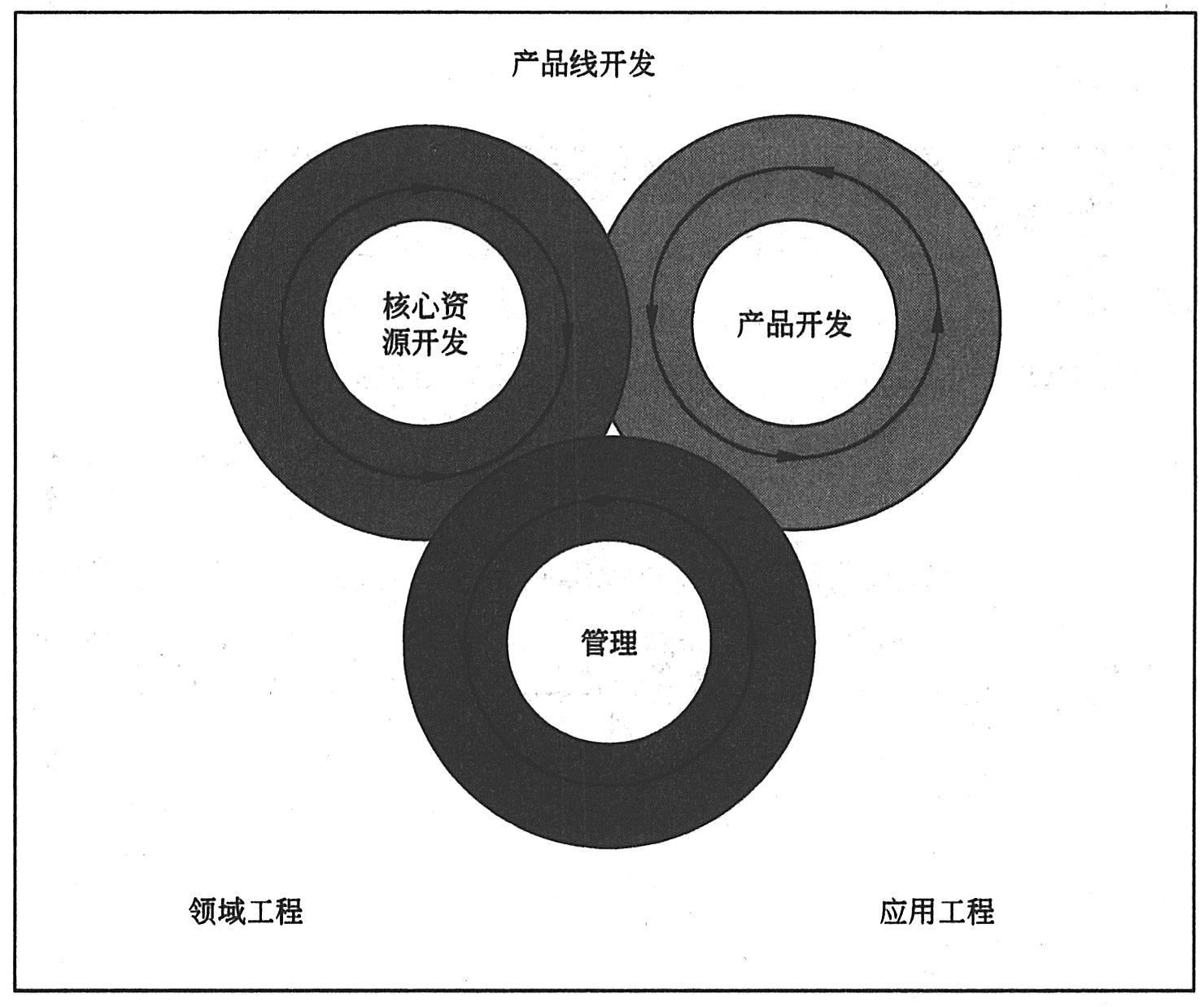 从本质上看,产品线开发包括核心资源库的开发和使用核心资源的产品开发,这两者都需要技术和组织的管理。核心资源的开发和产品开发可同时进行,也可交叉进行,例如,新产品的构建以核心资源库为基础,或者核心资源库可从已存在的系统中抽取。有时,我们把核心资源库的开发也称为领域工程,把产品开发称为应用工程。