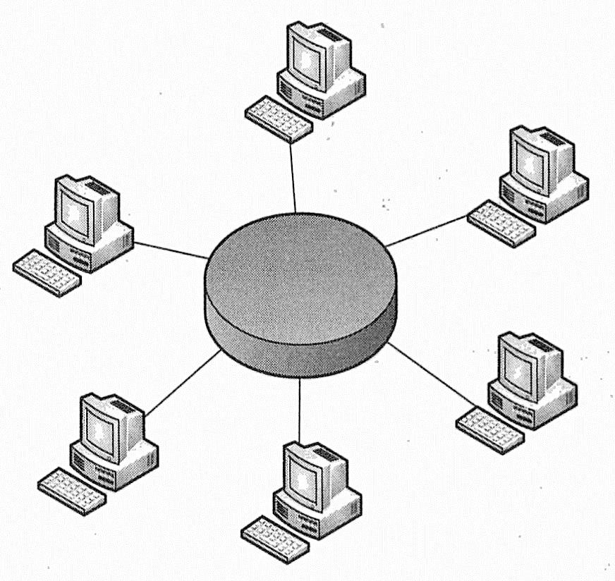 也许大多数读者现在会想到,自己单位的局域网就是属于这种拓扑结构。星状拓扑结构的网络的确也很常见,甚至可以说,目前,一般单位的局域网都是采用星状拓扑结构的网络,交换机就是处于中间枢纽位置上的网络交换设备。换言之,通过交换机(或集线器)来进行连接的网络都可以称为星状拓扑结构的网络。不过这里需要提醒大家注意的是:通过集线器来连接的这种网络只是在物理连线上属于星状拓扑结构,而在逻辑拓扑结构上来说,它仍然有可能是属于总线状拓扑结构的网络,因为网络中采取的媒体访问控制协议仍然可能是以太网协议(即CSMA/CD控制方法),后面的章节会进一步讲到。