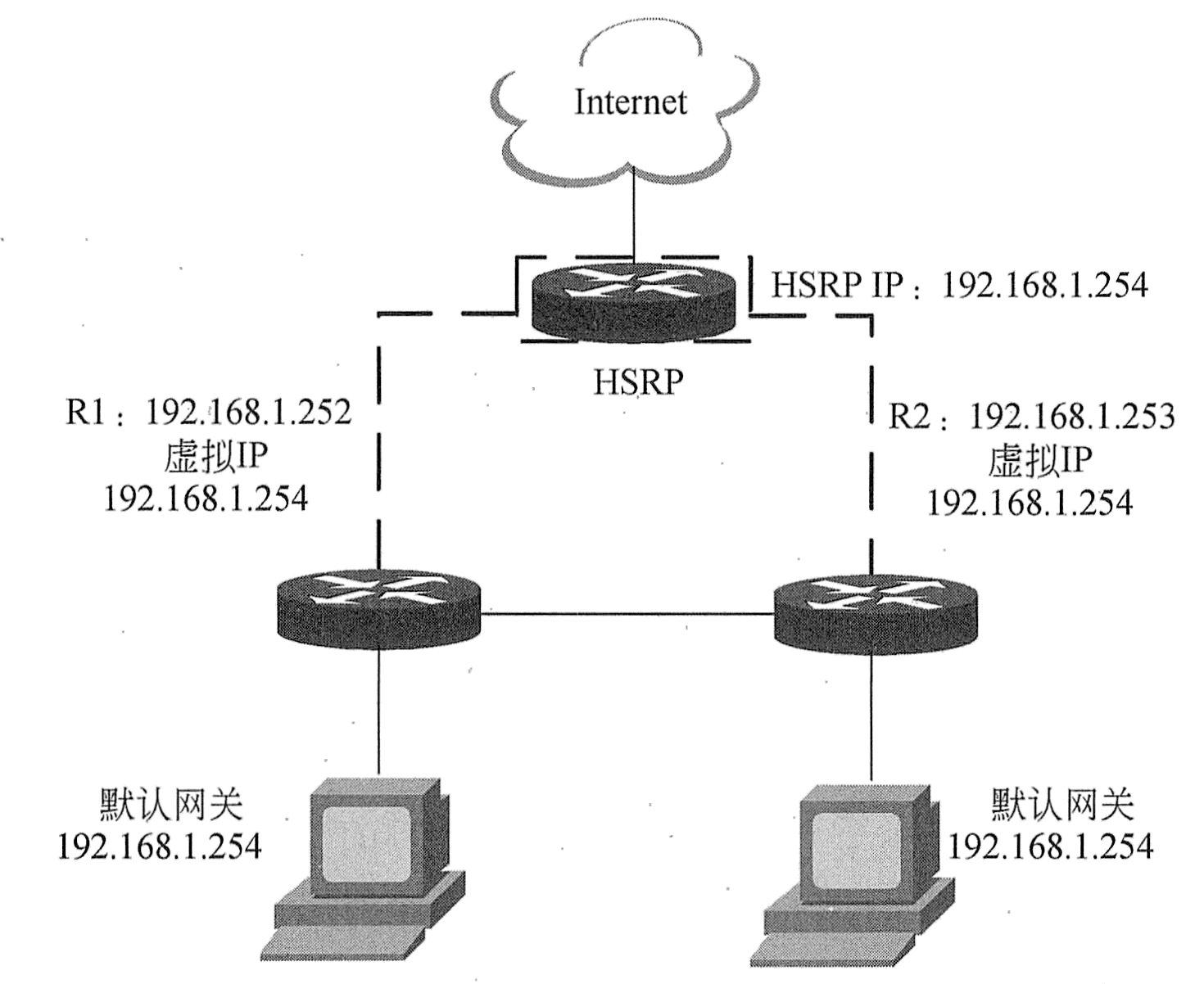 Cisco公司的HSRP允许网络在一个路由器失效不能工作时,网络中的另一个路由器自动接管失效路由器,从而实现IP路由容错。