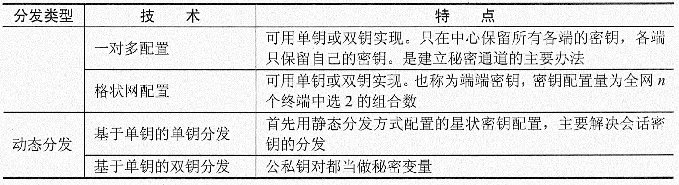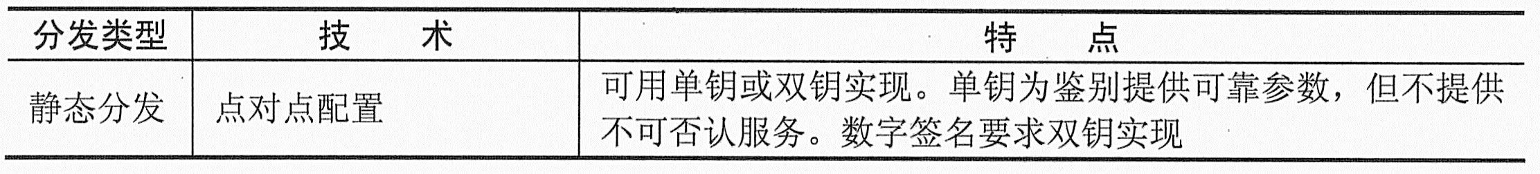 分发密钥的安全性依赖于秘密信道,如下表所示。