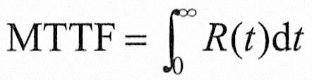 如果R(t)=e-λt,则MTTF=1/λλ为失效率,是指器件或系统在单位时间内发生失效的预期次数,在此处假设为常数。例如,假设同一型号的1000台计算机,在规定的条件下工作1000小时,其中有10台出现故障。这种计算机千小时的可靠度R为(1000-10)/1000=0.99。失效率为10/(1000×1000=1×10-5)。因为平均无故障时间与失效率的关系为MTTF=1/λ,因此,MTTF=105小时。