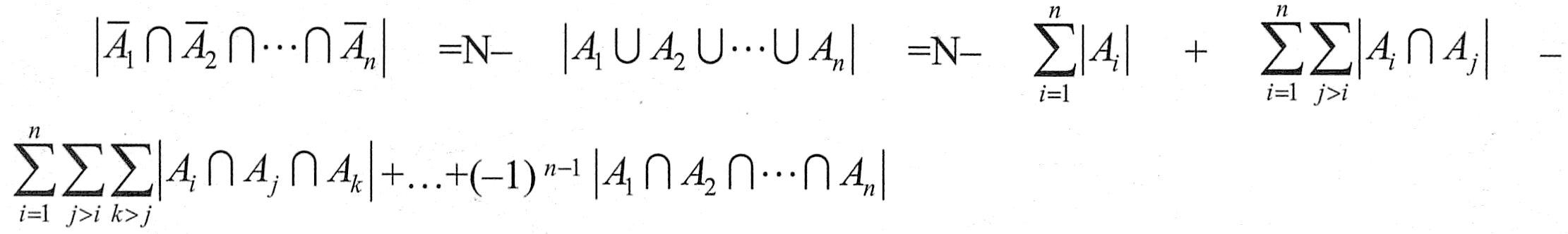 公式二:设A1,A2,…,An是有限集合,且都是集合U的子集,N为集合U的元素个数,则