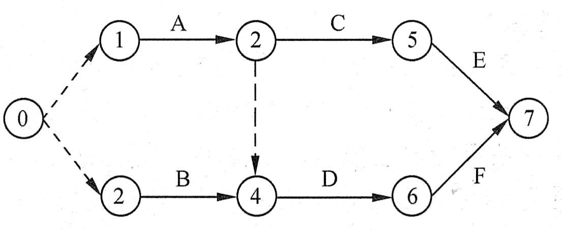 (2)任何两项活动紧前事件和紧随事件代号至少有一个不相同,节点序号沿箭线方向越来越大。