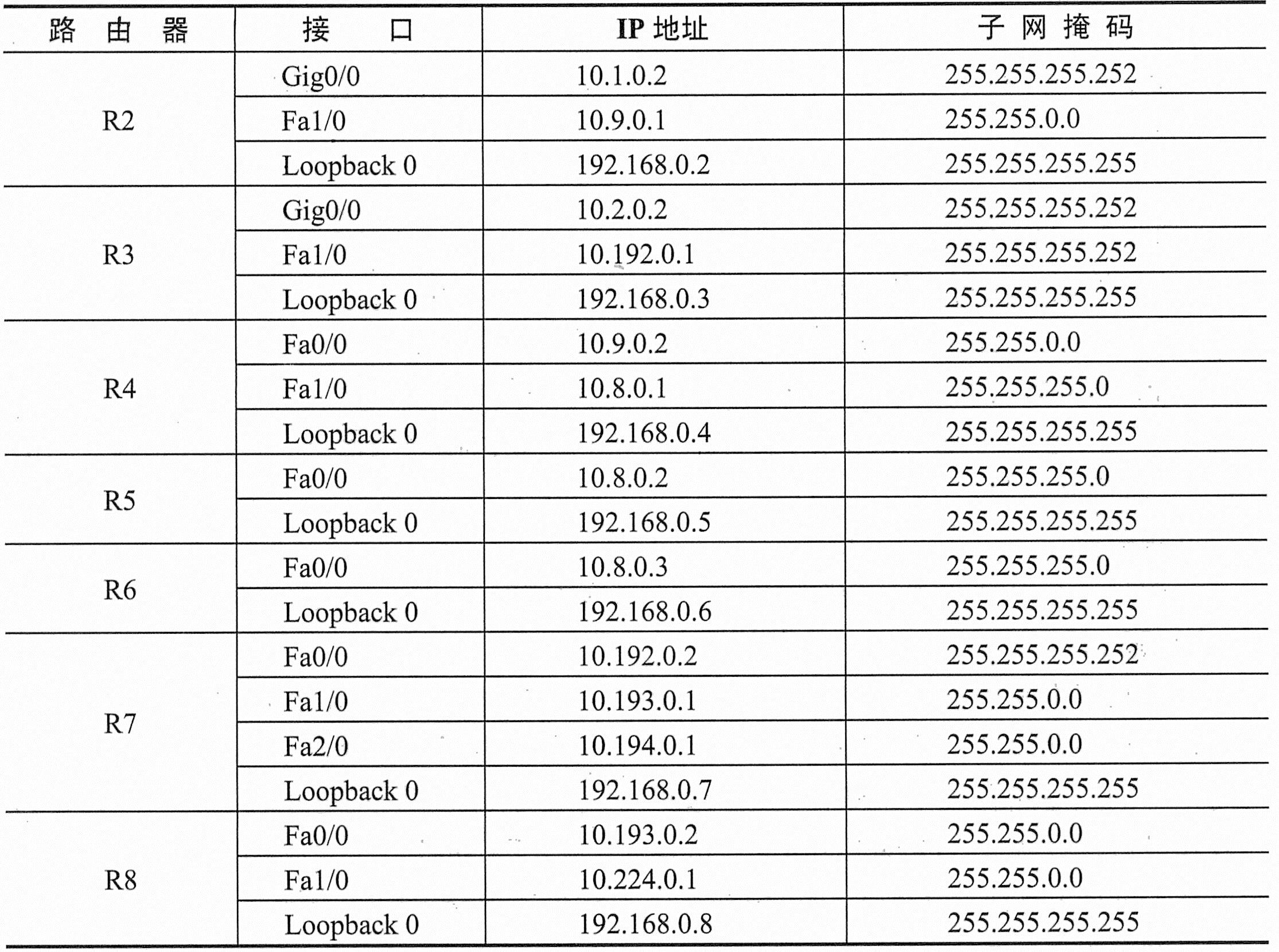 某公司的网络结构如下图所示,所有路由器、交换机都采用Cisco产品,路由协议采用OSPF协议,路由器各接口的IP地址参数等如下表所示。