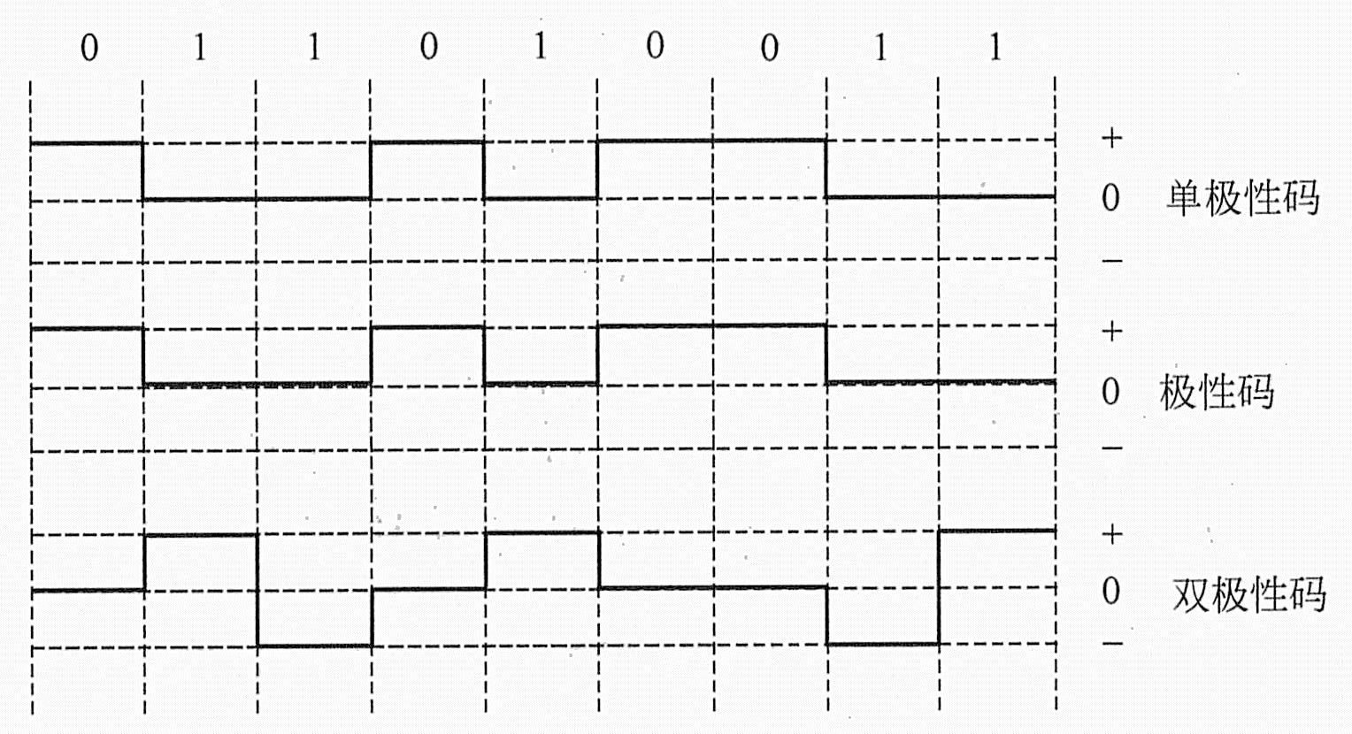 (1)极性编码。极包括正极和负极。因此从这里就可以理解单极性码,就是只使用一个极性,再加零电平(正极表示0,零电平表示1);极性码就是使用了两极(正极表示0,负极表示1);双极性码则使用了正负两极和零电平(其中有一种典型的双极性码是信号交替反转编码AMI,它用零电平表示0,1则使电平在正、负极间交替翻转)。码的极性变化如下图所示。