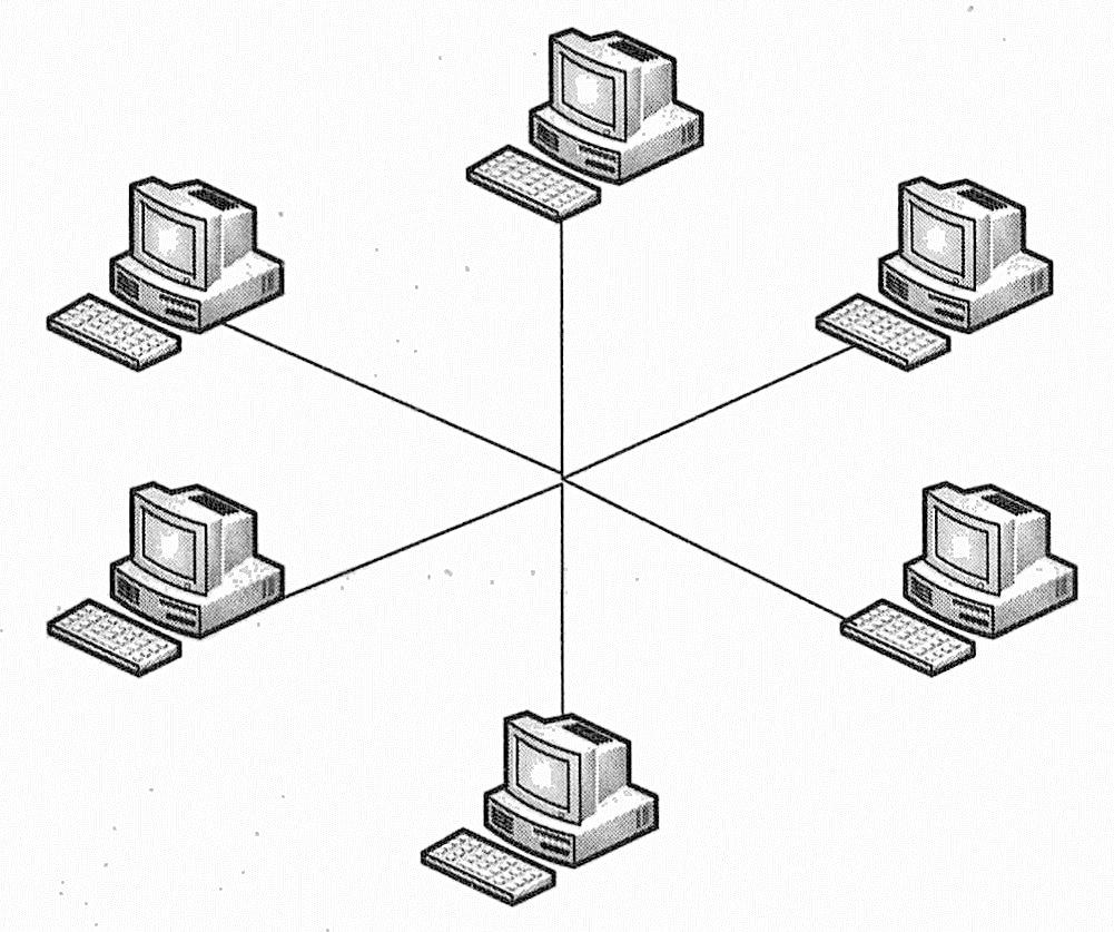 也许大多数读者现在会想到,自己单位的局域网就是属于这种拓扑结构。星状拓扑结构的网络的确也很常见,甚至可以说,目前,一般单位的局域网都是采用星状拓扑结构的网络,交换机就是处于中间枢纽位置上的网络交换设备。换言之,通过交换机(或集线器)来进行连接的网络都可以称为星状拓扑结构的网络。不过这里需要提醒大家注意的是:通过集线器来连接的这种网络只是在物理连线上属于星状拓扑结构,而在逻辑拓扑结构上来说,它仍然有可能是属于总线状拓扑结构的网络,因为网络中采取的媒体访问控制协议仍然可能是以太网协议(即CSMA/CD控制方法),后面的章节会进一步讲到。