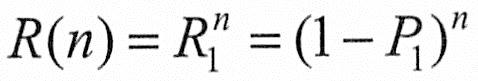 于是,软件的可靠度(n次运行不出现差错的概率)为