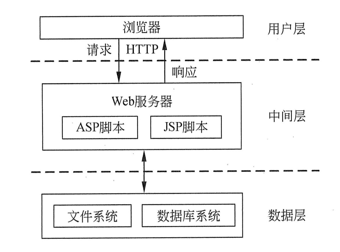 在用户层利用Web页面的HTML语言和JavaScript等脚本语言,使用浏览器与用户交互,将用户的操作转化为业务指令,处理过程是:首先,客户浏览器向Web服务器发出一个请求,这个请求的请求对象是一个HTML页面或者是ASP、JSP脚本等脚本页面,Web服务器接收到这个请求后,执行页面文件对应的解释程序来解释执行相关的脚本程序,从而得到返回结果,并将结果以某种可显示的方式展示给客户。当需要访问数据库时,由脚本程序通过一些底层协议,如ODBC、JDBC,访问数据库。
