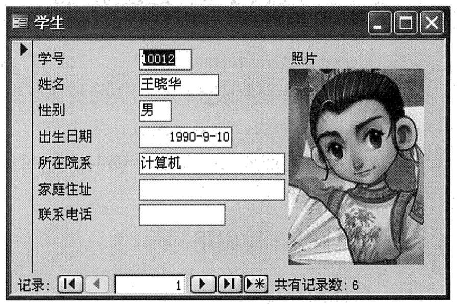 (4)单击“保存”按钮,在“窗体名称”文本框内输入窗体名称,单击“确定”按钮,创建的“学生”窗体如下图所示。