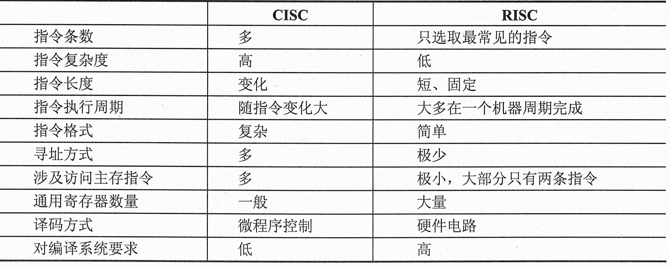 (5)以硬布线逻辑控制为主。为了提高操作的执行速度,通常采用硬布线逻辑(组合逻辑)来构建控制器。而CISC机的指令系统很复杂,难以用组合逻辑电路实现控制器,因此通常采用微程序控制。